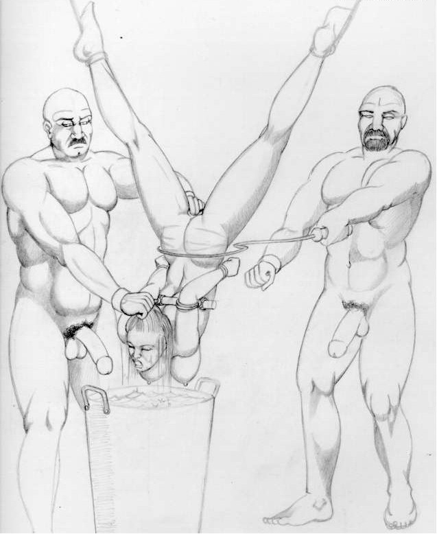 brother would pull on the girl's vagina lips. She's scream into her gag and