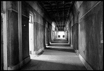 deserted corridor, he would hear voices and see figures in the darkness of his